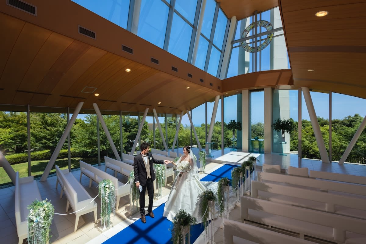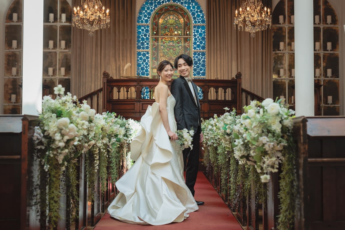 ベールアップや指輪交換など挙式シーンの撮影も叶うチャペルフォト。挙式会場を借りての撮影のほか、チャペルスタジオを完備しているところも。