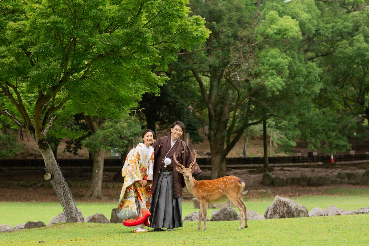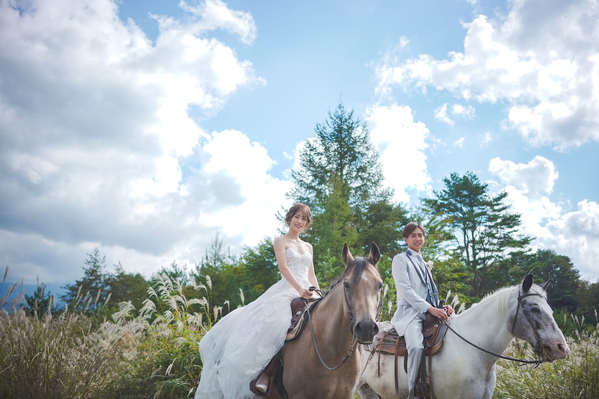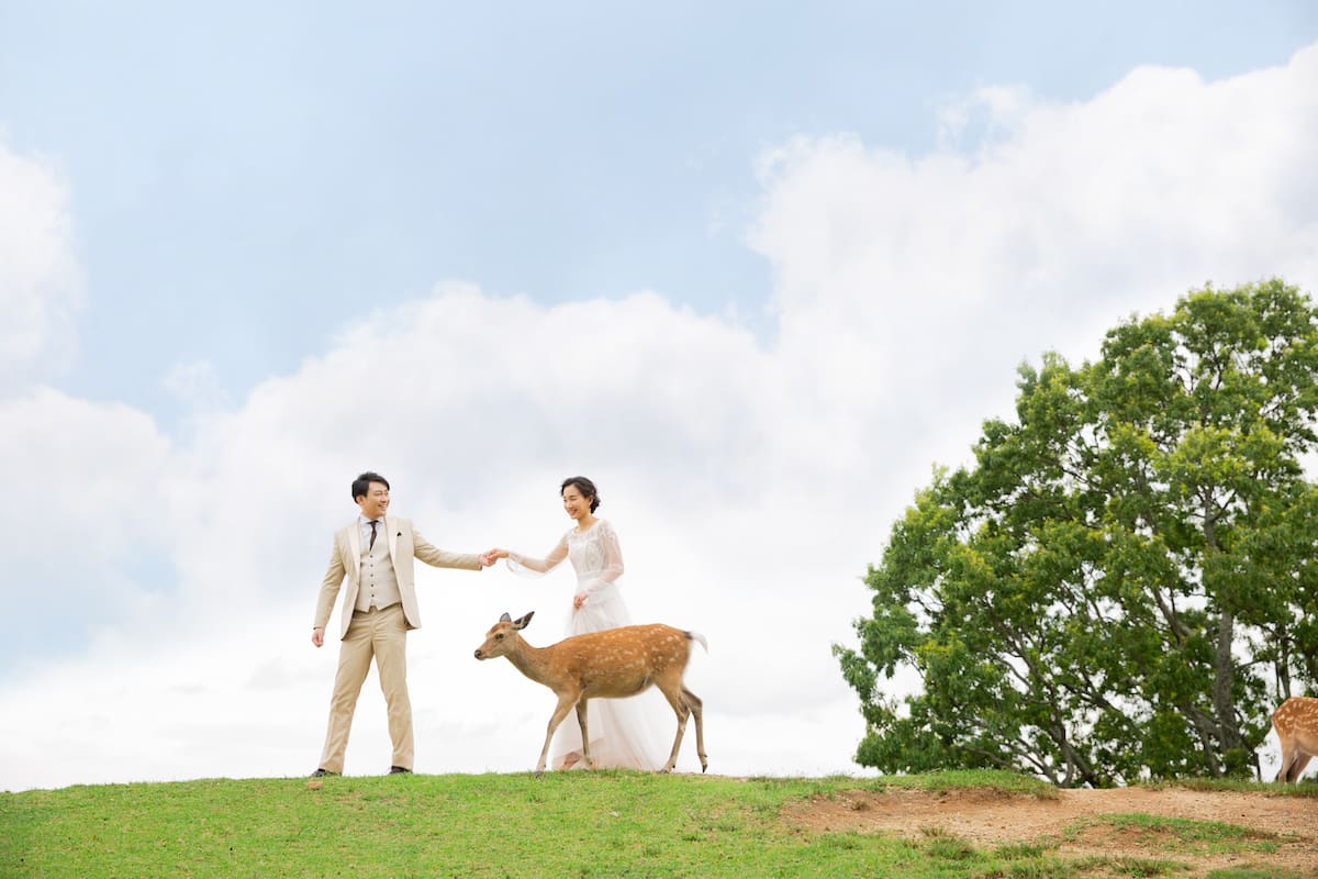 動物たちとふれあいながら、ナチュラルな雰囲気の写真が残せます。ときにカメラ目線もくれたりと、動物たちも祝福してくれているよう。